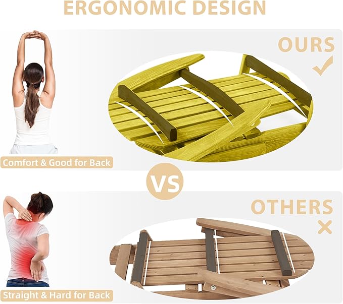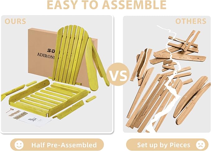 - PREMIUM HEMLOCK WOOD: SoliWood outdoor folding adirondack chair is using selected solid wood, every piece was well selected and with brushed finishing, giving you premium and royal feel when sitting on it.