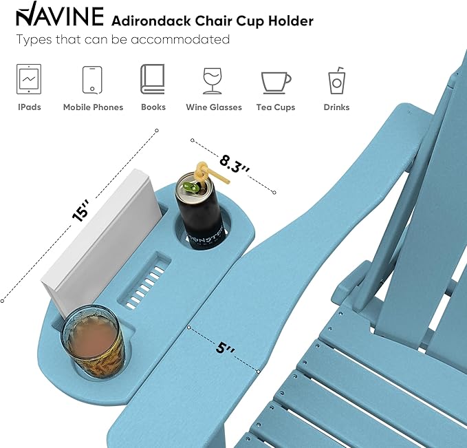 - ☘️【Multifunctional Cup Holder & Folding Function】We have improved upon the traditional Adirondack chair by installing a multifunctional cup holder on the right side of the chair. There's plenty of room for your favorite beverage or media device. It can store iPads, mobile phones, books, wine glasses, tea cups and drinks! Easy to fold, just remove the pins on both sides of the chair and it folds flat for easy transport and storage!