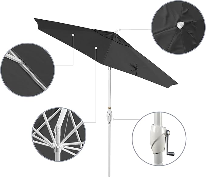 - CONSTRUCTION: Entire frame is made from rust-free all aluminum with stainless steel hardware, 8 ribs for added canopy support, 1. 5-inch diameter aluminum pole providing a stronger more durable frame, built-in wind vent and ties to close the umbrella totaling superior weather protection.