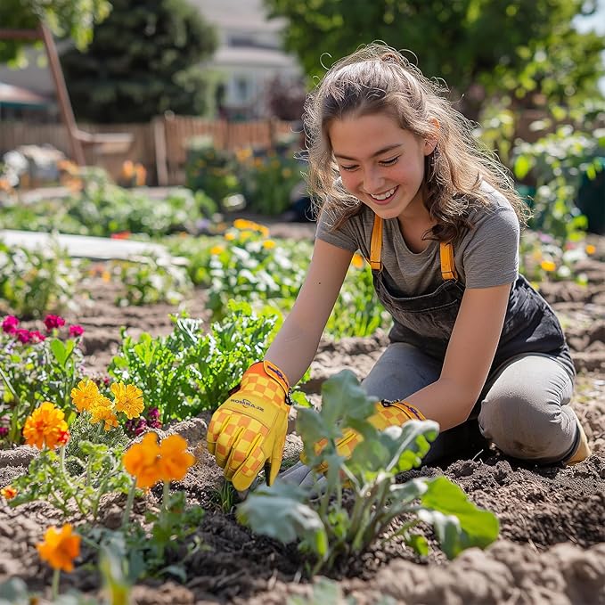 Leather-Gardening-Gloves for Women,Thorn-Proof Work-Gloves for Weeding,Digging,Planting,Pruning Yard garden Gloves