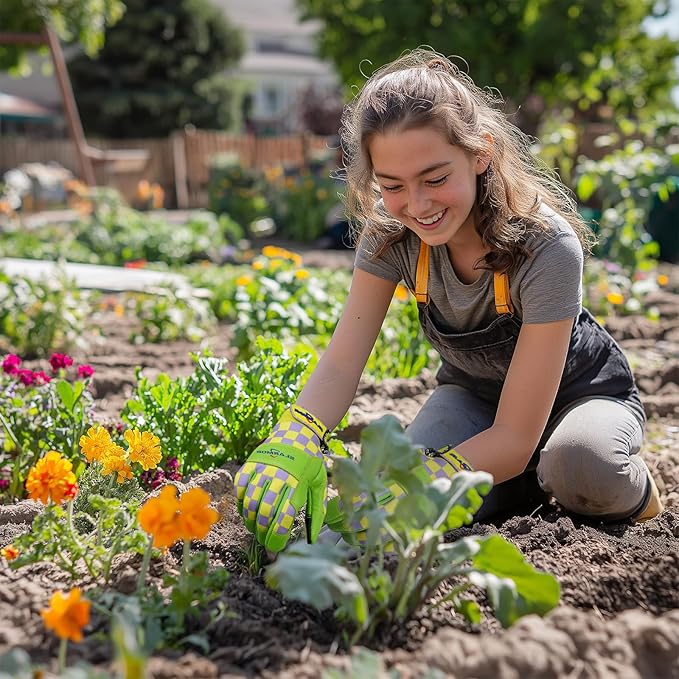 • DURABLE AND BREATHABLE MATERIAL: Gardening gloves are made of microfiber leather to ensure abrasion resistance. Reinforced fingertips protect your fingers. The palms have excellent grip and provide ultimate protection against scratches or cuts when planting vegetables or flowers. The back of the hand is made of stretchy and breathable fabric to keep your hands dry and clean while working. It would be great gardening gloves for women