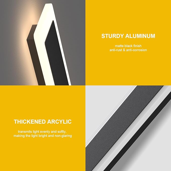 - 【High quality manufacturing】Made of aluminum metal and acrylic lampshade with modern and minimalist style, the long outdoot wall light provides wider lighting for your home. When the modern outdoor light is turned on, the whole fixture will emit a beautiful but not harsh light, bright and attractive. Perfect for outdoor and indoor decorations, add modern elements to your home.