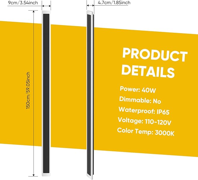 1-Pack 59inch Modern Outdoor Wall Lights, LED Wall Light Outdoor Lights Fixture for Patio Wall Mount, IP65 Waterproof Black Outside Lights for House, Garage, Porch (3000k)