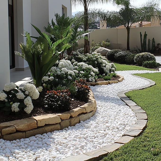 - Garden Pathways and Borders: These 2-3.5 inch pebbles are ideal for garden pathways, flower beds, and patio borders. Their larger size creates a more prominent and defined edge for landscaping projects, offering both functionality and a modern aesthetic