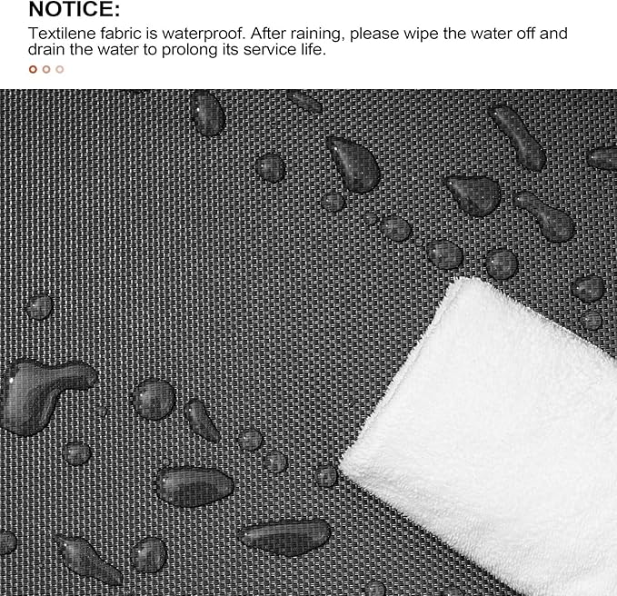 - Long Lasting & Easy Care: The back and seat fabric are made of UV-resistant breathable Textilene fabric for long lasting use, water and oil proof, quick dry and easy maintenance. Pls kindly wipe the water off and drain the water to prolong its service time. This chaise lounge is easy to be assembled, only need to assemble 10 screws.