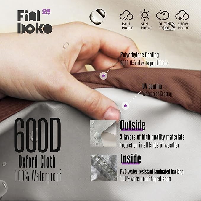 - [Extra Layer Of Protection] The Terrace Heavy-duty Furniture Cover Made Of 600D Rainproof Oxford Cloth Can Effectively Protect Your Terrace Furniture From Factors Such As Sunlight, Rain, Wind, Hail, Bird Droppings, Etc.