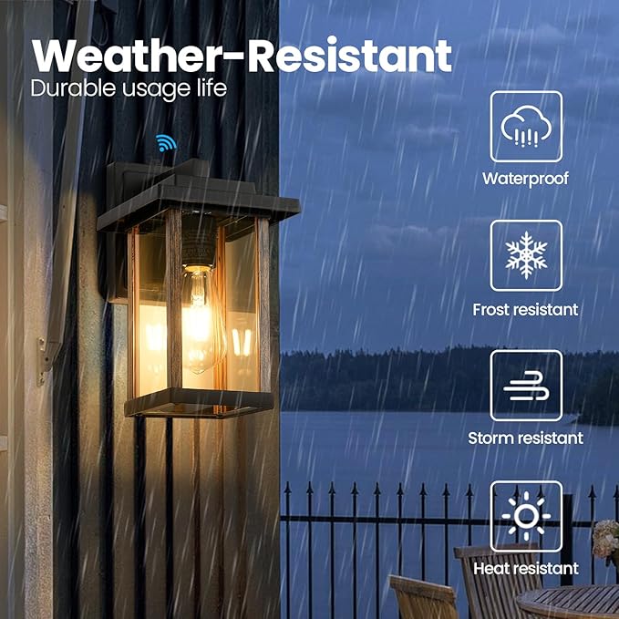 - [WEATHER RESISTANT]: Our rustic outdoor sconce lights are with good weather resistance, anti-rust and anti-corrosion performance, which enables them to withstand extreme weather.