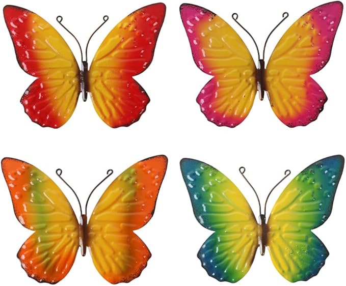 dreamskip Metal Butterfly Wall Decor Art, 4 Pack Colorful Metal Butterflies Outdoor Wall Art, Hand Painted Outdoor Wall Decor For Garden, Yard, Fence, Patio, Living Room, Bedroom Decoration