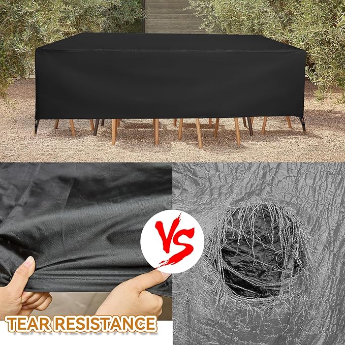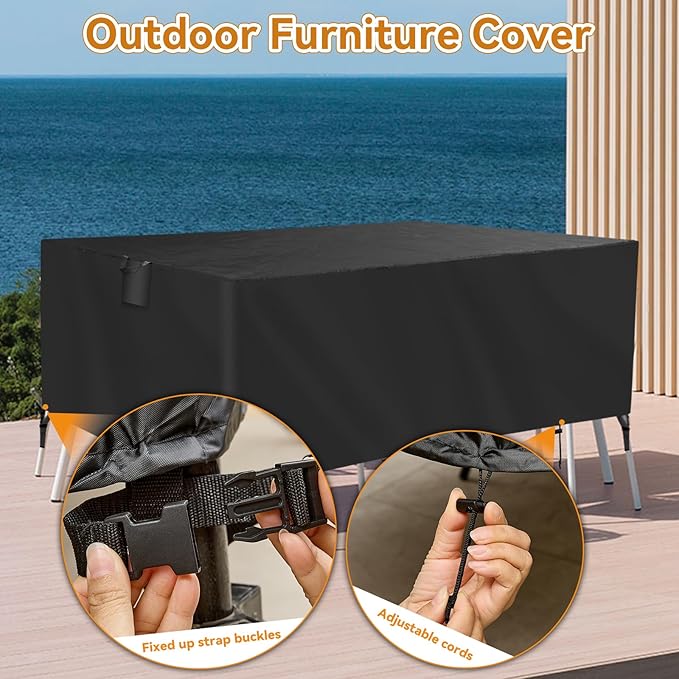 - Enhanced Durability: The anti-tear design of our rectangular patio table cover ensures long-lasting use. You can trust that these outdoor furniture covers will stand up to harsh weather conditions while keeping your patio furniture safe and secure.