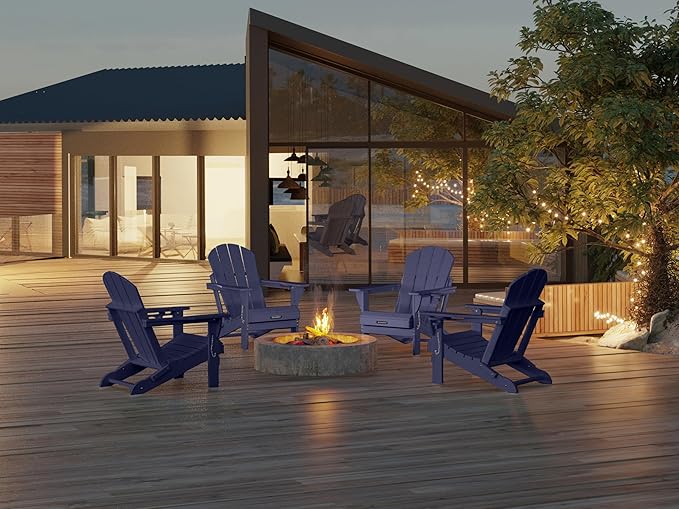 MUCHENGHY Folding Adirondack Chairs Set of 2, Patio & Outdoor Chairs, Plastic Weather Resistant with Cup Holder for Deck, Backyard, Garden (Dark Navy Blue)