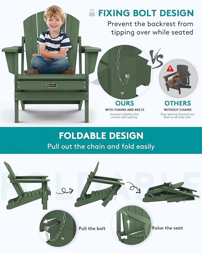 - Folding Design: Are you still struggling with the size of Adirondack Chair? This Adirondack chair can be stored away easily. Buy SERWALL folding adirondack chairs to make more room for your home!
