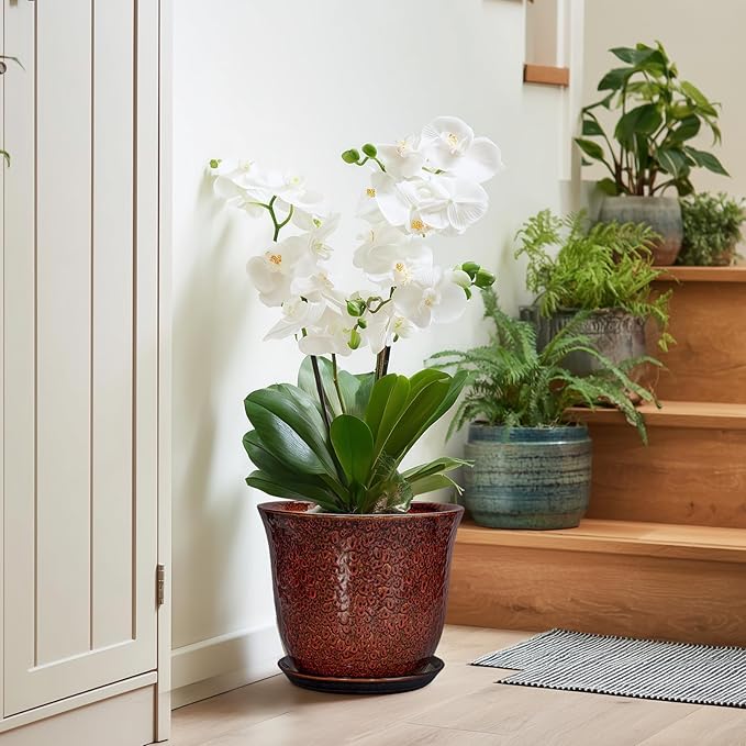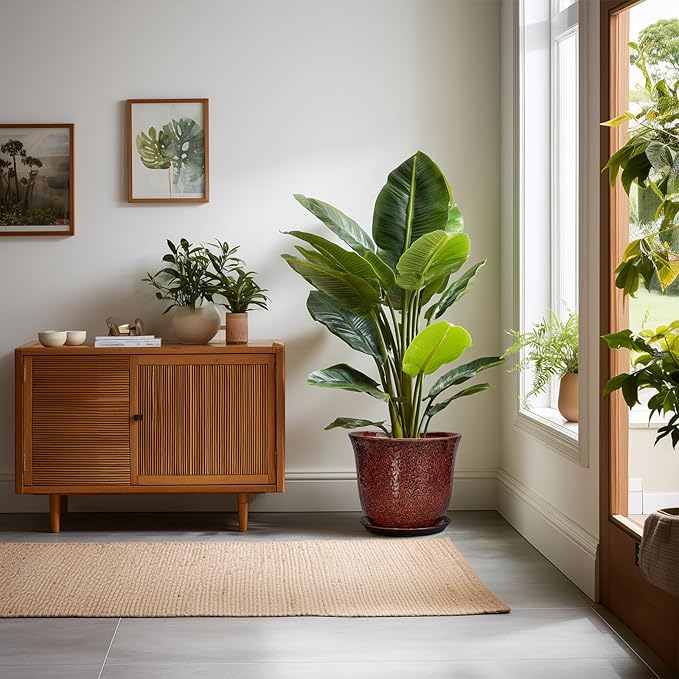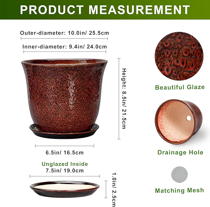 - Ideal Size: These ceramic pots for plants measure 10.0" x 10.0" x 8.5" and comes with drainage holes, a plant saucer, a drainage net, creating a healthier environment for plants while keeping your space neat and clean
