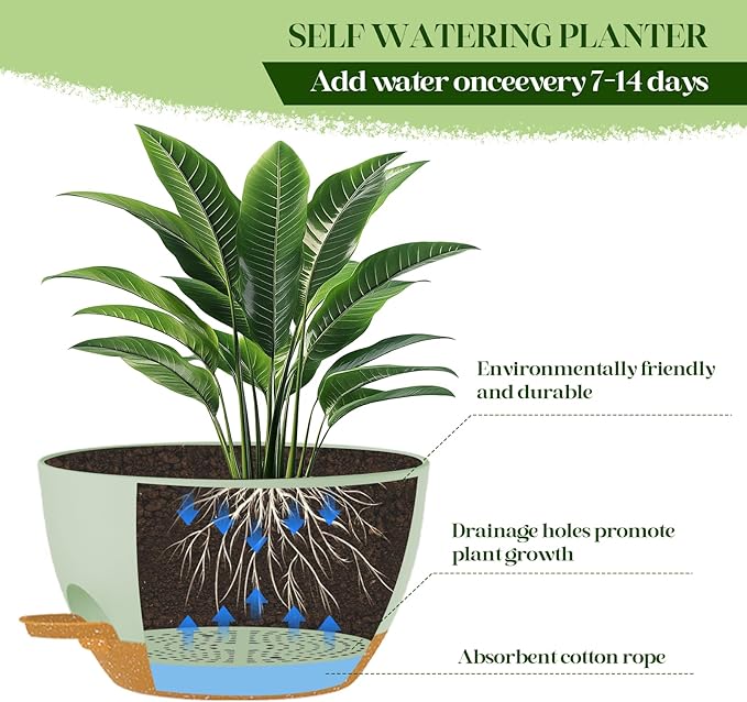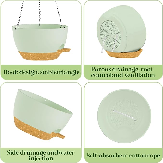 - ✅ 2 Large Self-Watering Planters: Double the value! Includes two 10-inch wide plastic hanging planters with built-in self-watering reservoirs to reduce the need for frequent watering and keep plants healthier.