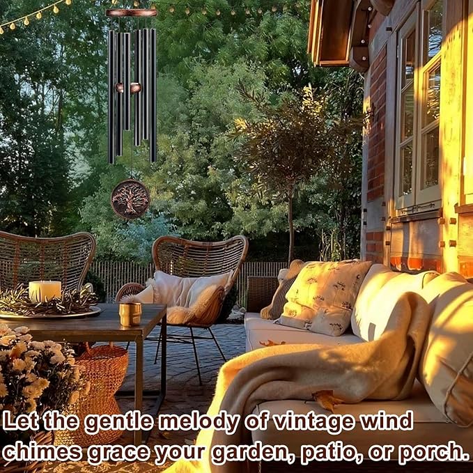 - Wind Chimes Deep Tone: Crafted with 6 aluminum tubes (tubes lengths from 10" to 14", tubes diameter are 0.75") in a pentatonic scale, our wind chimes produce rich, deep tones that linger like a calming whisper, their serene sound fosters peace and connection to memories. Let soothing melodies turn your garden into a serene sanctuary.