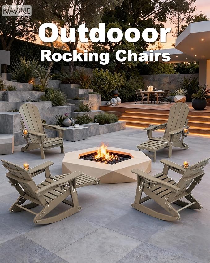 - 4-IN-1 MULTIFUNCTIONAL FOLDING ROCKING CHAIR: Our folding rocking chair is a combination of a rocking chair and a folding Adirondack chair with retractable ottoman, featuring a folding design, a removable rocking base, a retractable ottoma and two cup holders. Adirondack rocking chair meets your diversified needs in different occasions, becoming an indispensable leisure companion in your life.